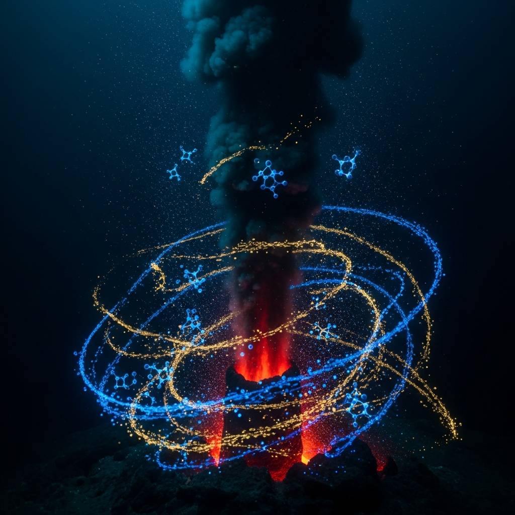 熱水噴出孔とは、海底の地殻の裂け目からマグマによって加熱された数百度という超高温の熱水が噴き出す場所です。この周囲は高水圧かつ暗黒の世界ですが、驚くべきことに多様な生態系が形成されています。最新の研究において最も注目されているのが、この熱水と周辺の岩石が反応することで、生命の設計図となるアミノ酸やペプチドといった複雑な有機化合物が自然発生的に生成されているという事実です。